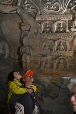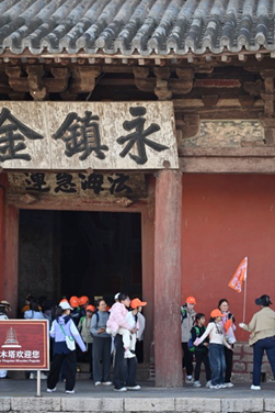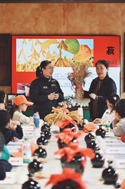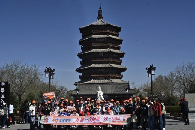 四天里,小队长们在云冈石窟的大佛前安静地仰头,收集打卡壮观的石窟艺术(“眼之灵气”),在东南邑的街道上结识大同本地的朋友,学习大同本地的方言,倾听大同本地的老故事(“耳之灵气”),在非遗老醋坊里品鉴几十年的老陈醋(“鼻之灵气”),在应县木塔下动手拼装斗拱(“身之灵气”),在代王府的夜色里,为天女散花、敦煌飞天、打铁花欢呼赞叹。孩子们经历了很多的第一次:第一次出省,第一次坐飞机,旅途中第一次看见泛白的盐碱地,第一次跟大同人一起“喝西北风”,第一次在轮椅上看见了1600年前的佛、940年的木塔……
