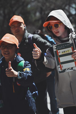 本站14个孩子的年龄在12至15岁,涉及脊髓性肌萎缩症(SMA)、进行性肌营养不良(DMD)、软骨发育不全、线粒体脑肌病、结节性硬化症、小胖威利综合征、白化病、甲基丙二酸血症等多种罕见疾病。开营仪式上,他们一一勇敢开口介绍自己和家庭成员,成为家庭小队的“小队长”,他们将全程带领自己的家人完成探险之旅,每人领到一本“漫游护照”——眼、耳、鼻、舌、身、意六枚贴纸,对应六个关卡和挑战,集齐灵气,悟空即可重回齐天大圣之身。
