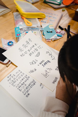 诗歌课接近尾声时,坚春天老师告诉孩子们,活动的最后一天恰好也是支持"罕罕漫游"四年的"亮亮哥哥"贾乃亮先生的生日。话音未落,孩子们已经纷纷拿起笔——有人画下外星小猫、五角星与烟火,有人工工整整写下"亮亮哥哥,祝你生日快乐,我们爱你",再郑重地签上自己的名字。那一张生日卡,歪歪扭扭,色彩缤纷,是这间隔壁教室里另一种形式的诗:孩子们用最笨拙也最真挚的语言,向一位四年来默默陪伴他们的大人,说了一声谢谢。