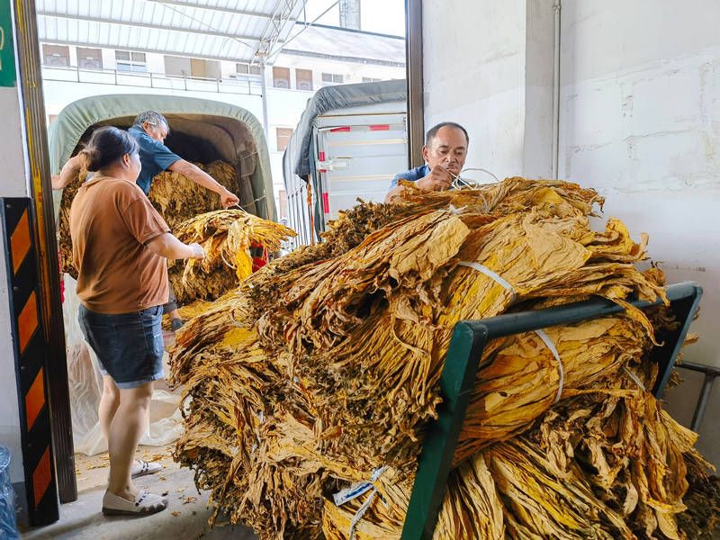 正在交售烟叶的烟农顾洪虎笑着说:“我种了34亩,已经交了4000多斤。如果全部顺利卖出,扣除成本和人工,纯利润能有六七万元。”他感叹,“这‘金叶子’真是越种越有盼头!”