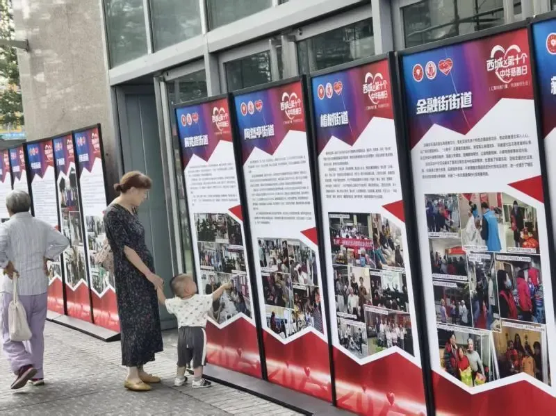 作为本次活动的重头戏,“椿庭喜市”甜蜜公益市集于9月5日至6日在庄胜广场热闹开市。市集以“公益+甜蜜”为主线,设置八大主题区域、40个特色摊位,汇聚甜品饮品、文化老字号、非遗体验、科技服务等多重元素,实现公益与消费的有机融合:本真咖啡、21cake、巴黎贝甜、蜜雪冰城等甜品饮品推出的折扣满送等活动,吸引众多年轻人驻足;国华黄金推出黄金克减让消费者在购物中助力公益;白记年糕、月盛斋等一众牛街小吃也推出特价网红爆品;张一元、全聚德、四川饭店以及琉璃厂西街宏宝堂、一得阁等老字号推出的市集专属优惠传递老字号的民生温度;荣宝斋木板水印与漆扇非遗体验等以惊喜折扣体验吸引居民互动,让传统文化在公益中焕发新活力;牙管家AI口腔检测、椿树司法所法律服务一体机等科技服务则让慈善插上智慧的翅膀。