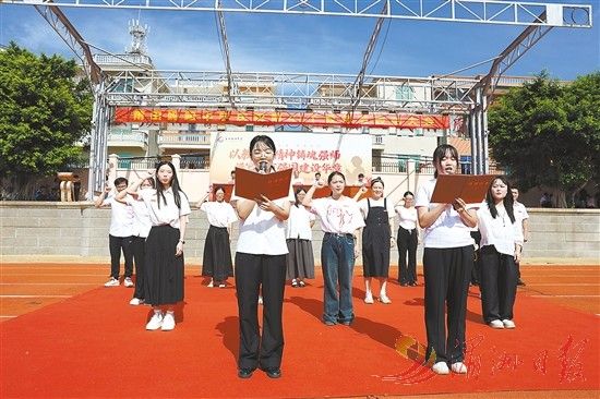 妈祖中学新入职的18名教师庄严宣誓,展现新教师投身教育事业的责任担当。
