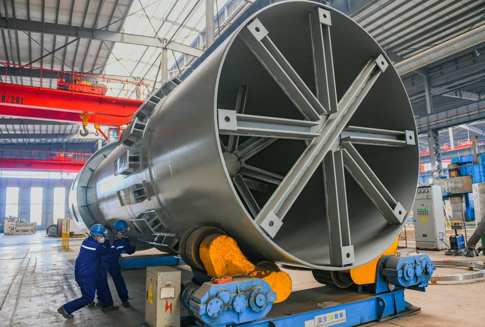 河南龙佰智能装备制造有限公司的工人在生产化工设备。该公司位于博爱经济技术开发区,今年以来科学制订产销计划,排好班,定产量,抢开局,开足马力快生产、赶订单,全力满足市场需求,生产车间一派繁忙生产景象,力争实现“开门红”。