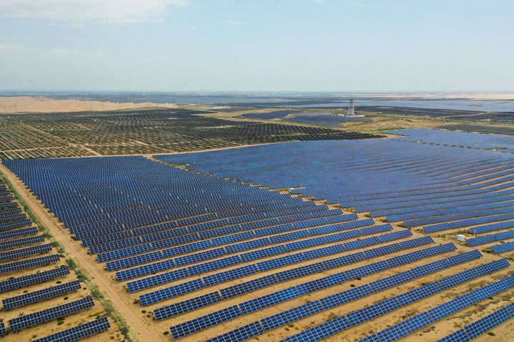 位于鄂尔多斯市杭锦旗的国家第一批大基地项目之一的蒙西基地库布其200万千瓦光伏治沙项目已并网发电,去年发送绿电41亿千瓦时。杭锦旗能源局局长李利军说:“光伏板双面发电可增加发电量5%至10%,光伏板下种植优质牧草、药材实现立体生态种植,光伏板间运用先养鸡后养羊的‘畜禽草耦合’治沙技术,实现生态、经济、社会多重效益。”