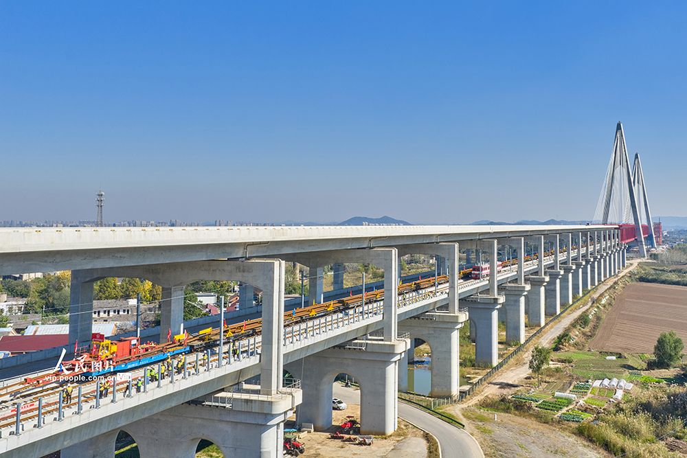 巢马城际铁路北起巢湖东站,南至马鞍山东站,正线全长约61公里,设计时速350公里。全线共设巢湖东、含山、郑蒲港、马鞍山南、马鞍山东5座车站,其中含山、郑蒲港、马鞍山南为新建车站。全线铺轨里程达145.8公里,包括正线铺轨138.18公里、站线铺轨6.11公里。史家民摄(人民图片网)