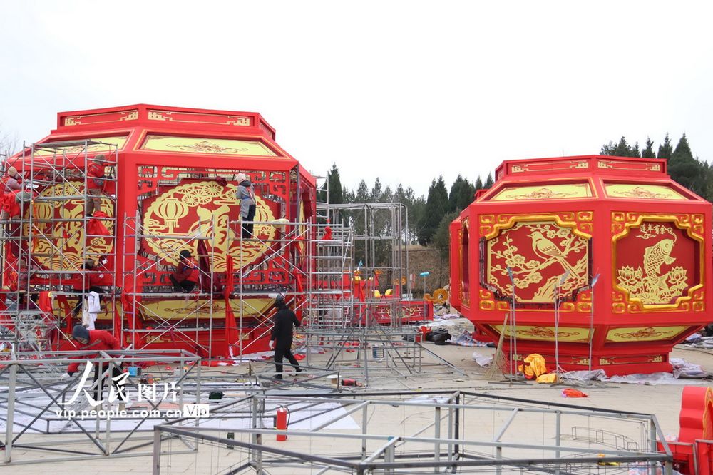 2025年12月21日,在河南省三门峡市2025年12月21日,在河南省三门峡市陕州地坑院景区,工人在制作大型彩灯。陕州地坑院景区,工人在制作大型彩灯。